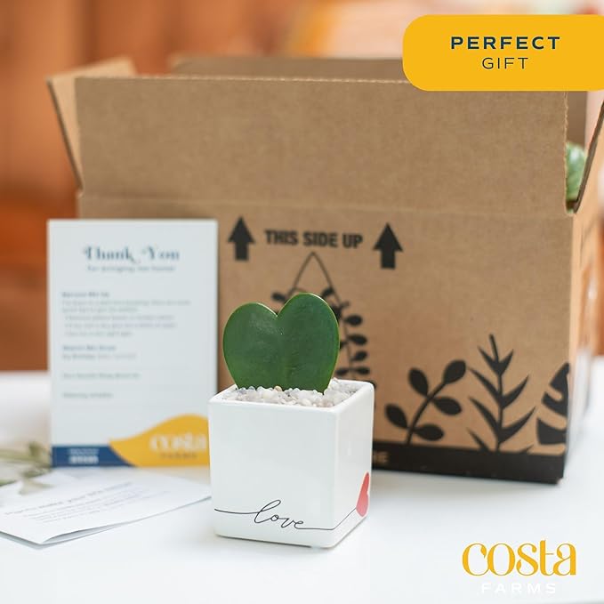 Costa Farms Hoya Heart Live Plant, Succulent-Like Houseplant in Cute Love Decor Plant Pot, Potting Soil, Live Plants Room Décor, Valentine's Day Gift For Mom, Birthday, Tabletop Size, 5-Inches Tall