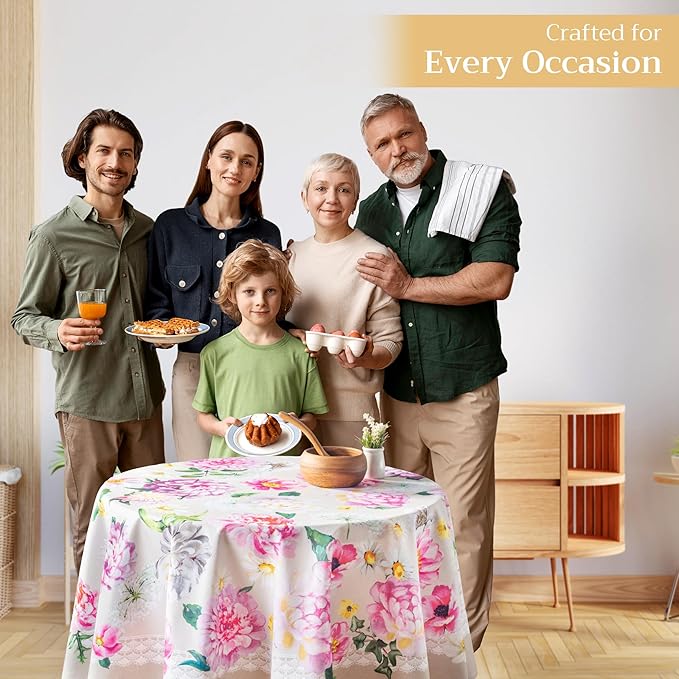 - Versatile for all occasions: Ideal for kitchen tables, dining rooms, or as a decorative tablecloths round for parties, weddings, and seasonal events like Easter, Spring, Summer, Thanksgiving and Christmas. The versatile design complements both casual and formal settings.