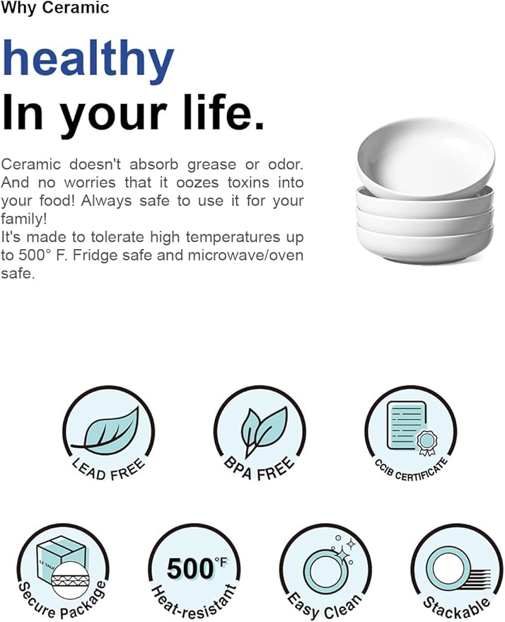 - Easy To Clean And Stackable: These pasta bowls have a smooth and tight ceramic glaze surfaceare so they are easy to clean. You can wash them with soap and hot water, or place them into your dishwasher. And they are stackable and don't take up a lot of space in your cupboard. Simple and clean bowl would be the timeless classics in your cupboard
