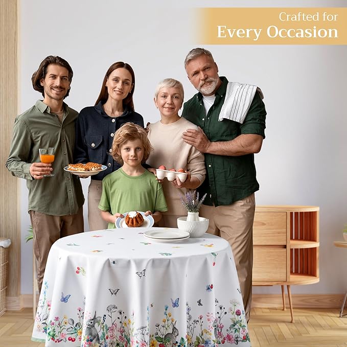 - Versatile for all occasions: Ideal for kitchen tables, dining rooms, or as a decorative tablecloths round for parties, weddings, and seasonal events like Easter, Spring, Summer, Thanksgiving and Christmas. The versatile design complements both casual and formal settings.