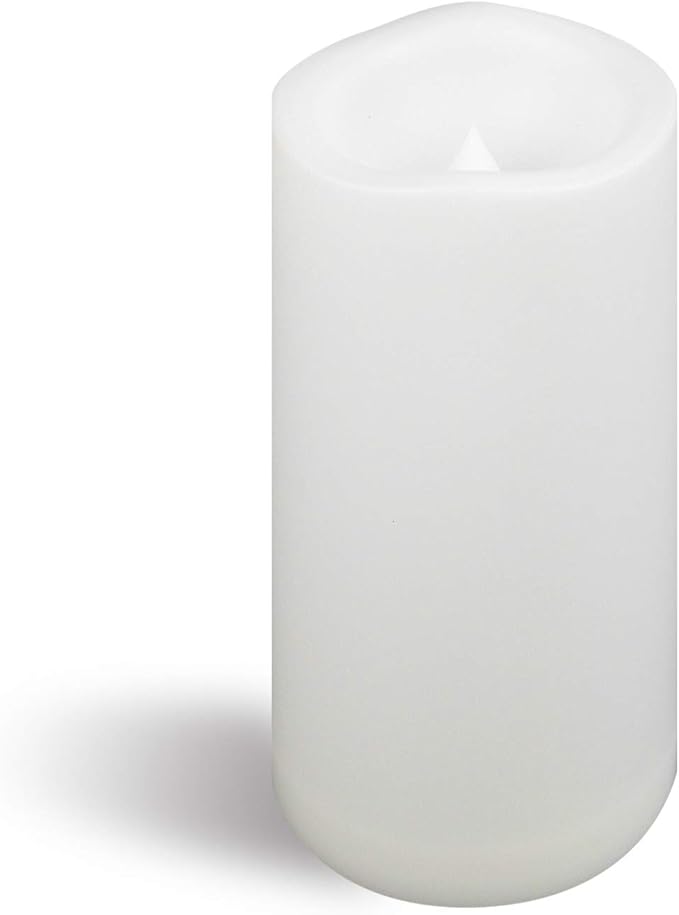 - Truly waterproof and large sized outdoor candle. The plastic battery candle is waterproof and designed for outdoor use to decorate your garden, yard, patio, swimming pool, or an outdoor activity such as a BBQ party. The resin candle can be used indoor to decorate your fireplace and rooms. The LED candle is measured 4” in diameter, 8” in height and suitable for large hurricane lantern and whenever big outdoor candles are needed. Unlike wax candle, plastic candle never melts when used outside.