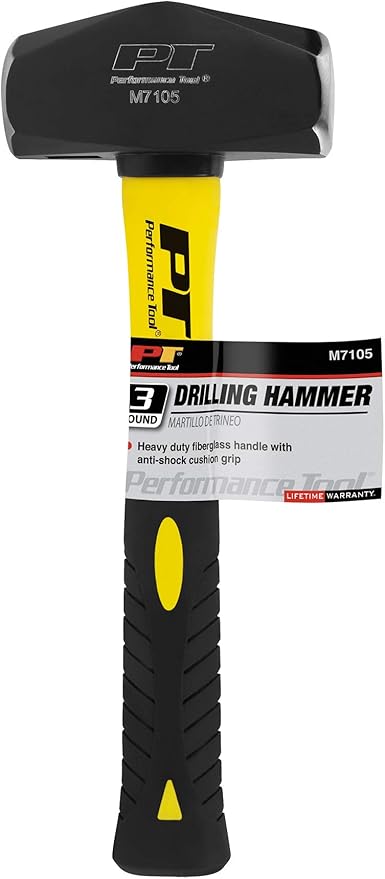 Performance Tool M7105 Heavy Duty Fiberglass Handle Hammer with Anti-Shock Rubber Cushion Grip and Mirror Polished Striking Face, 11-Inch Handle