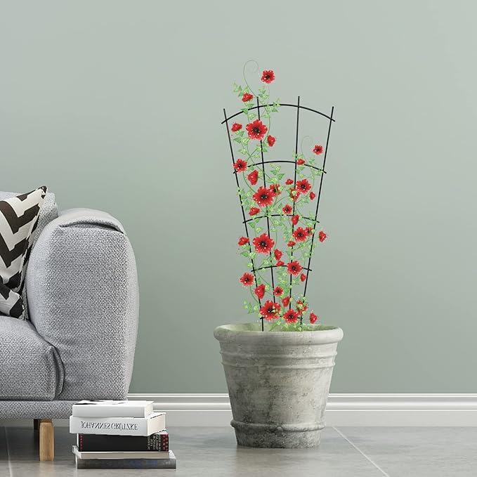 4 Pack 23'' Indoor Plant Trellis for Potted Plants Climbing, Outdoor Metal Garden Trellis Houseplants Flowers Vine Ivy,Fan Shape, Black