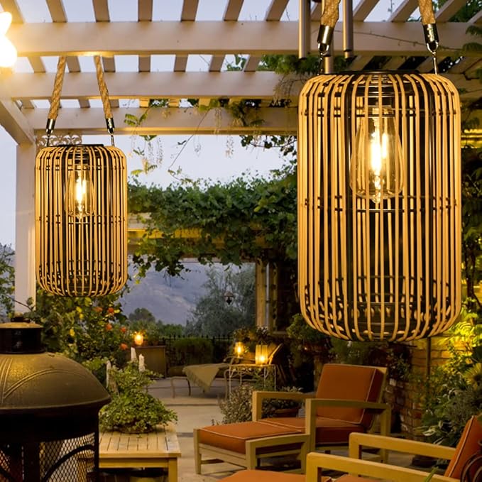 - 【Decorative Rattan Lantern】The solar lantern is made of metal and plastic rattan with twine hooks and detachable metal tripod, it contains a retro edison bulb. Its charming openwork pattern and subtle glow illuminate your patio in a special way, adding more nature to your garden. MAINLY FOR DECORATION, NOT FOR ILLUMINATION.If you have any missing issues, please contact us and we will fix it for you immediately.