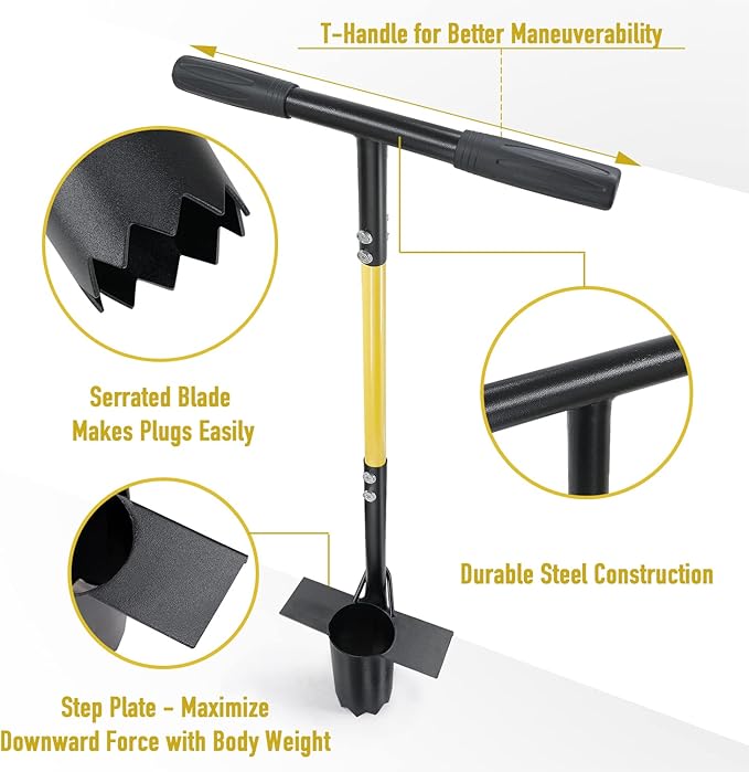 - 【Saw-Tooth Blade - Easy Plug Bulb Planter】- Tulip bulb planter tool with serrated blade, dig into soils and lawns easier to make plugs (the next plug pushes the previous plug out automatically). Powder coated steel construction of this bulb transplanter is built to last