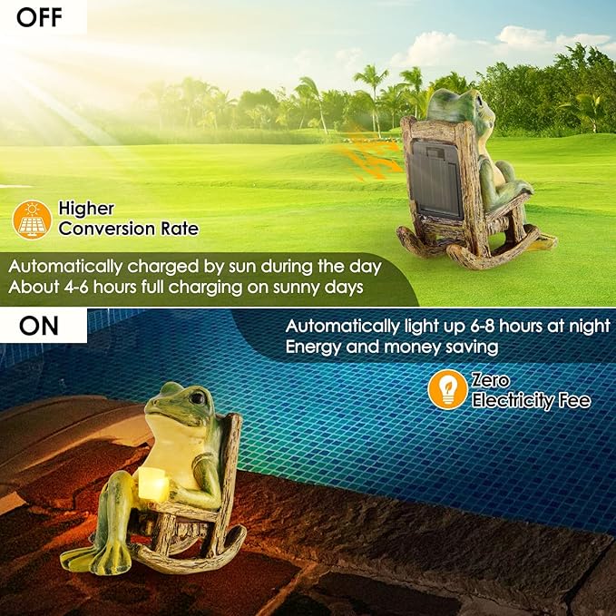 - 🐸Notice: It is not a large-sized frog statue, so please ensure to check the dimensions before making your purchase🐸. We take your shopping experience very seriously, If you have any questions about solar frog, please contact us directly to provide you with a satisfactory after-sales guarantee.