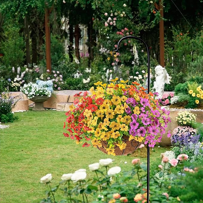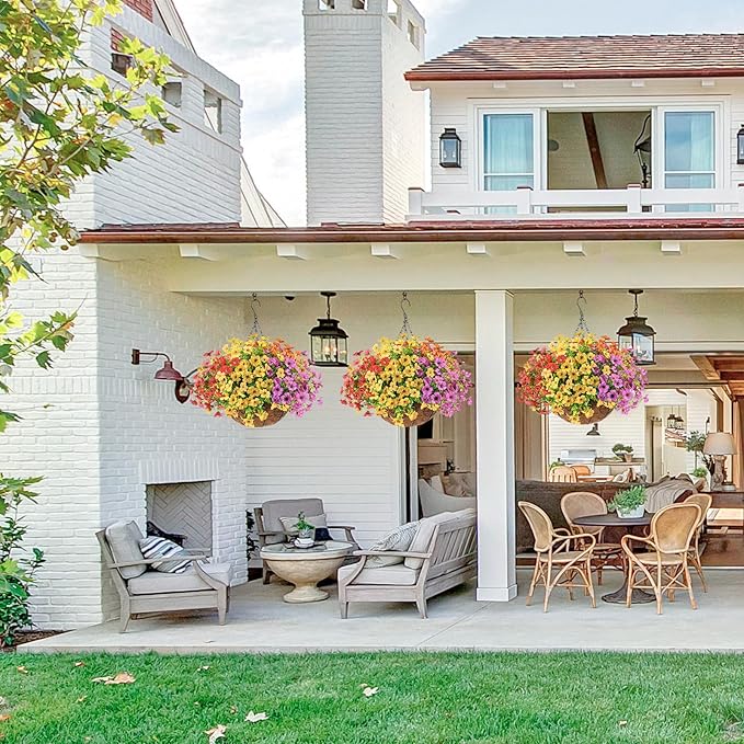 - UV-Resistant: Don't worry about fading – these artificial hanging outdoor flowers are UV-resistant to keep their vibrancy in the sun.