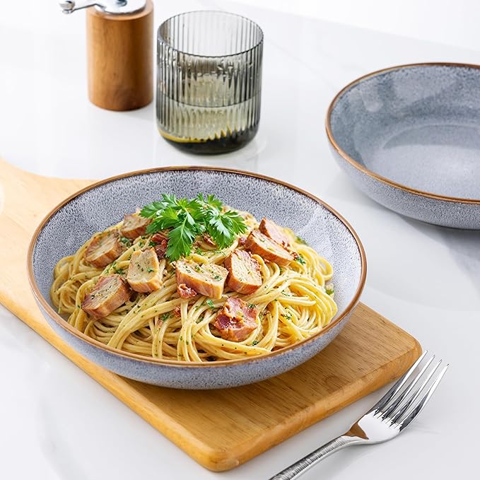 - HEALTHY & EXCELLENT VALUE : These Pasta bowls are made of degradable clay and fired at 2350℉ for 13 hours, making it free of lead and cadmium, NO need to worry about harmful substance leaching into your drinking and food, Twice fired premium ceramic make it sturdy, durable and chip-resistant for long use.