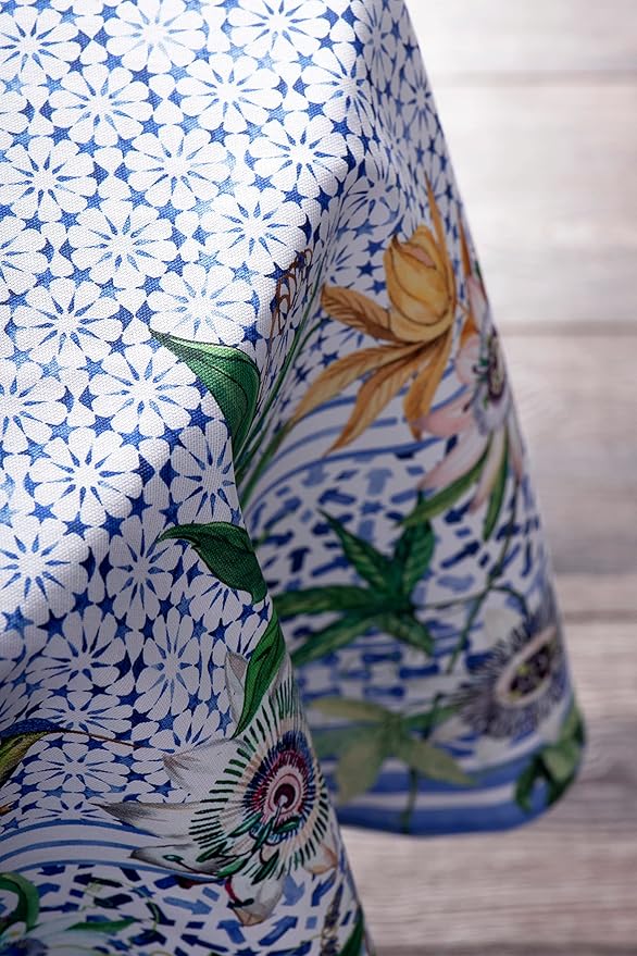 Maison d' Hermine Table Cloth Round Table 100% Cotton 63 Inches Tablecloth Reusable Decorative Everyday Use for Dining Room, Farmhouse, Home, Party, Festive & Wedding Spring Summer - Passiflora