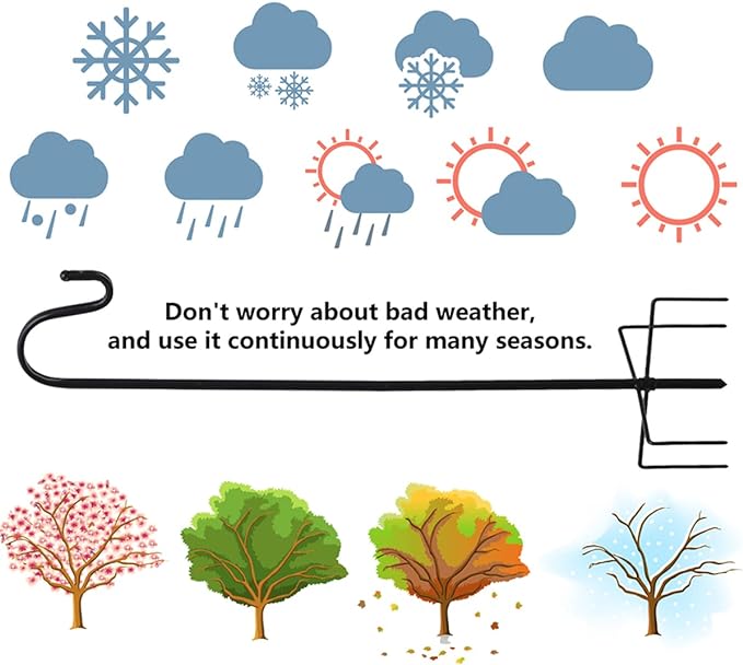 - 【Improved 5-Prong Base】 Our shepherd hook has been upgraded to a 5-prong base. Hooks are really strong, which brings more stability and strength than normal 2 or 3 prong shepherd hooks