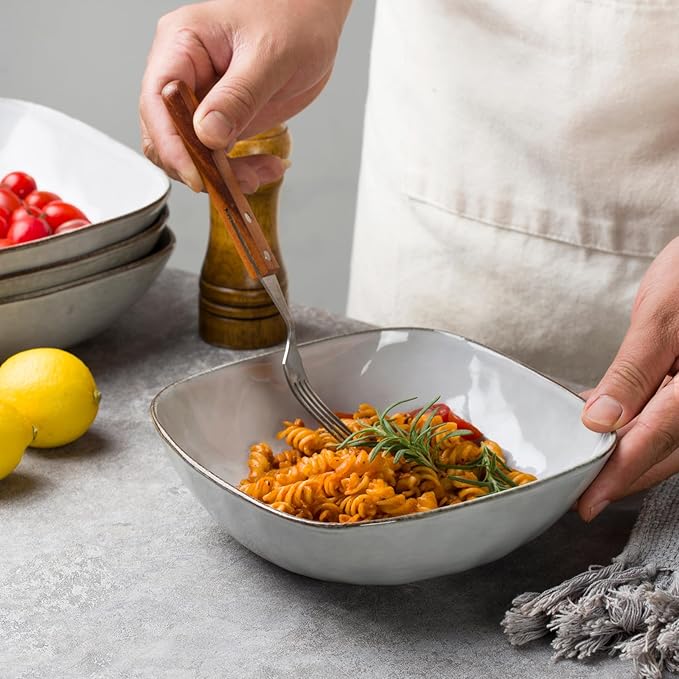 - 【Pasta Bowls Set of 4】Each bowl measures 8 inches. Great for pasta, noodles, desserts, ice cream, salads, rice, beans, and other dishes that include sauce or soup. Suitable for family dinner bowls and serving bowls for entertaining.
