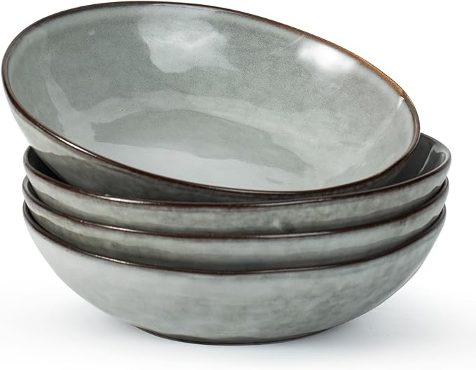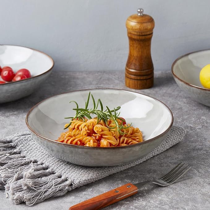 famiware Large Pasta Bowls Set of 4, Ocean Round 8.5" Pasta Serving Bowl Large Dinner Bowls, Kitchen Bowl Set, Microwave and Dishwasher Safe, Scratch Resistant, Grey