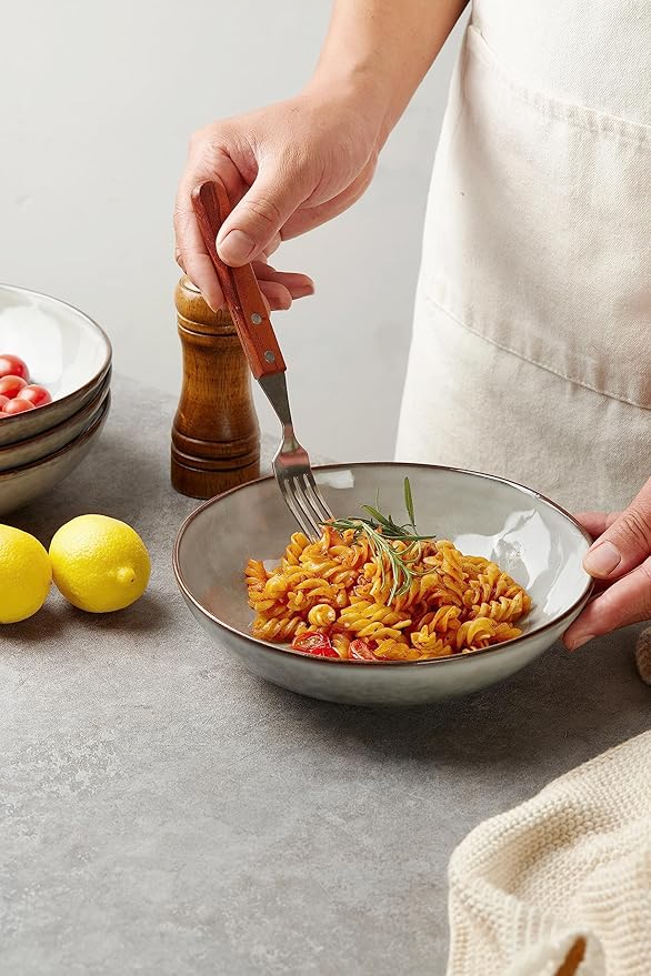 - 【Pasta Bowls Set of 4】Each bowl measures 8.5 inches. Great for pasta, noodles, desserts, ice cream, salads, rice, beans, and other dishes that include sauce or soup. Suitable for family dinner bowls and serving bowls for entertaining.
