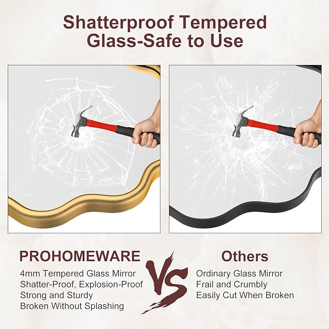 - 【Shatterproof Tempered Glass】: The wall-mounted bathroom mirror features 5MM tempered glass with shatterproof film, which is shatter-proof, burst-proof, and ensures your safety even in case of breakage
