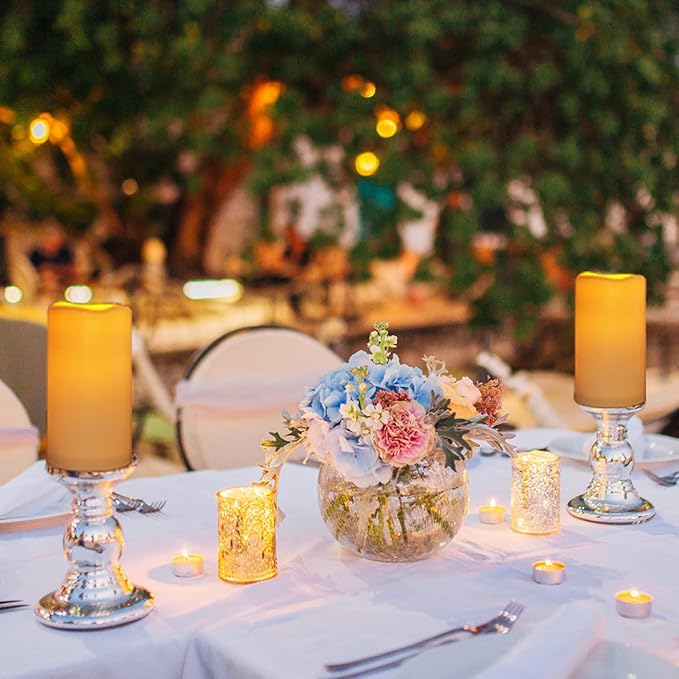 - Energy saving and powerful LEDs: These impressive candles require a 2AA battery per candle and are expected to last for about 300 hours, while LED lights have a lifespan of up to 50000 hours. Unlike real candles, these flameless cylindrical candles are durable and durable; You buy them once and always have them