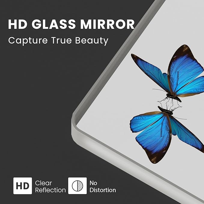 - Shatterproof Tempered Glass: The wall-mounted bathroom mirror features 12MM tempered glass with shatterproof film, which is shatter-proof, burst-proof, and ensures your safety even in case of breakage