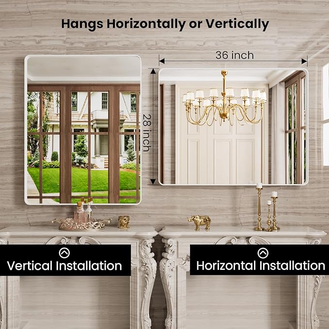 - Shatterproof Tempered Glass: The wall-mounted bathroom mirror features 8MM tempered glass with shatterproof film, which is shatter-proof, burst-proof, and ensures your safety even in case of breakage