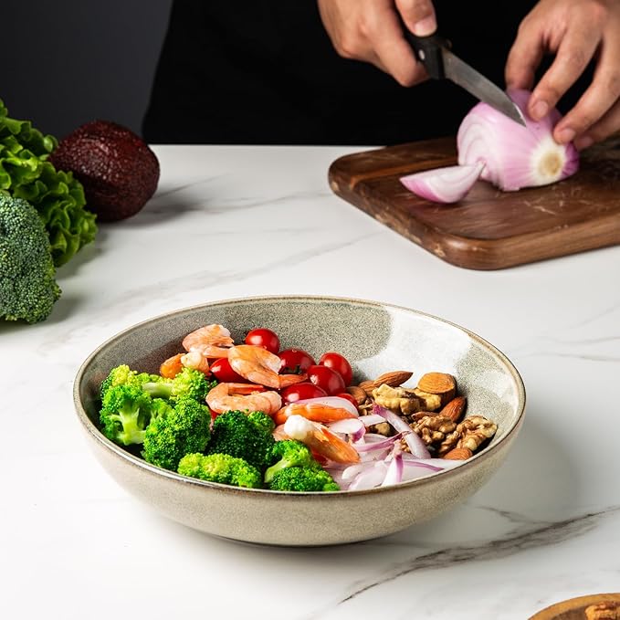 AmorArc 8.5'' Large Pasta Bowls, 36oz Stoneware Pasta Serving Bowls Set of 6 for Kitchen, Wide Bowls for Pasta,Salad,Oatmeal, Microwave Safe, Reactive Glaze