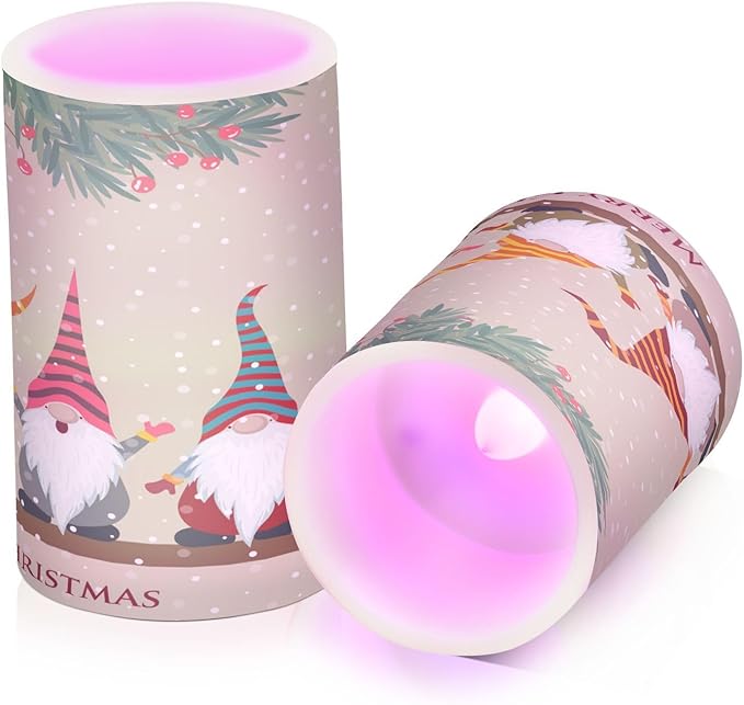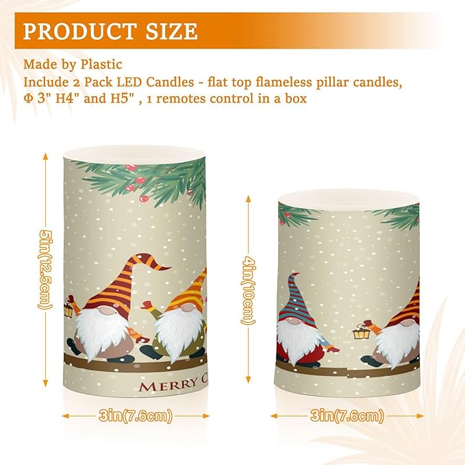 ALAZA Christmas Gnomes Flickering Flameless Candles Battery Operated with Remote Timer,Tea Light Candles LED Pillar Votive Candles Set of 2 for Outdoor Indoor Decorations
