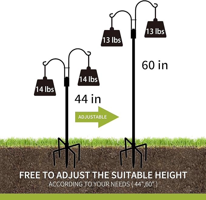 - Versatile And Multi Purpose: Thanks to the sturdy build coupled with the double arm design, our shepherds hook for outside provide the perfect fit for hanging solar lanterns, flower baskets, plant pots, hummingbird feeders, wind chimes, and more to complement any outdoor space
