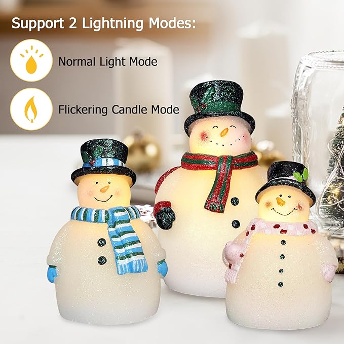 - 【Making A Cozier Atmosphere】 With fine sculpting technique & glittering sequins, these wax made snowman fake candles with colorful hats just like the real candles. Adding these charming snowman family candles set to your festive decorations. They will bring joy and happiness to your family for extra festive cheer.