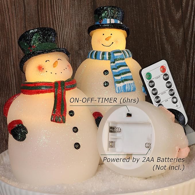 Flameless LED Candles Christmas Holiday Hand-Carved Snowman Sculptures Art Decor Real Wax Battery Operated Dimmable with Remote Timer Flickering Light Xmas Gift Home Room Table Ornaments