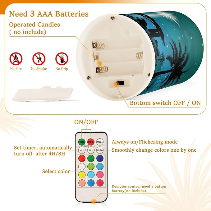 - Convenient Operation: Remote control candles allows you to set timer on your pillar flameless candles automatically turn on or off, also can adjust different flash mode lights according to your preferences, battery operated candle uses 3 AAA batteries, and the remote control uses 3V electronic buttons(Batteries are not included in this package)