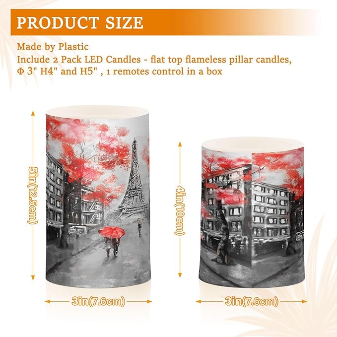 ALAZA France Paris Eiffel Tower Flickering Flameless Candles Valentines Day Battery Operated with Remote Timer,Tea Light Candles LED Pillar Votive Candles Set of 2 for Outdoor Indoor Decorations
