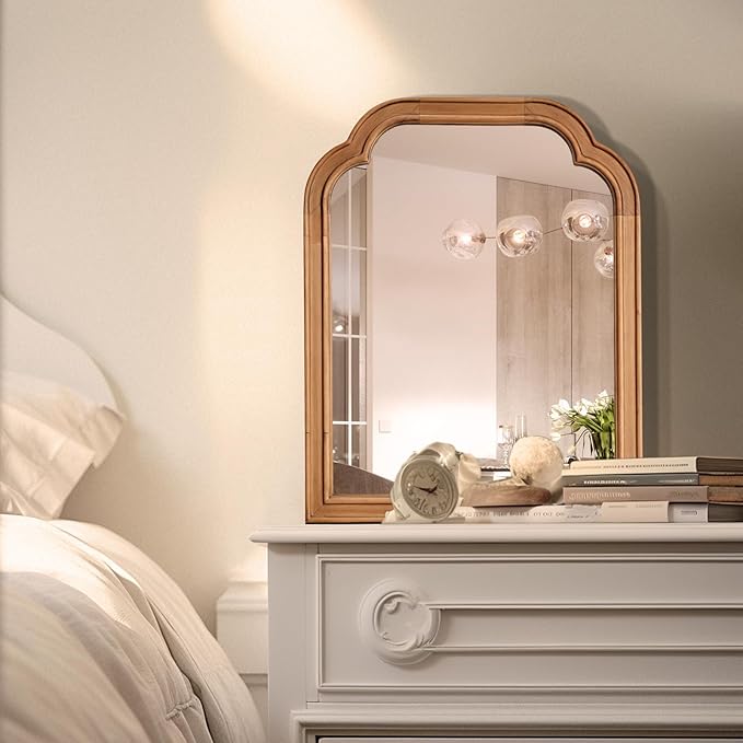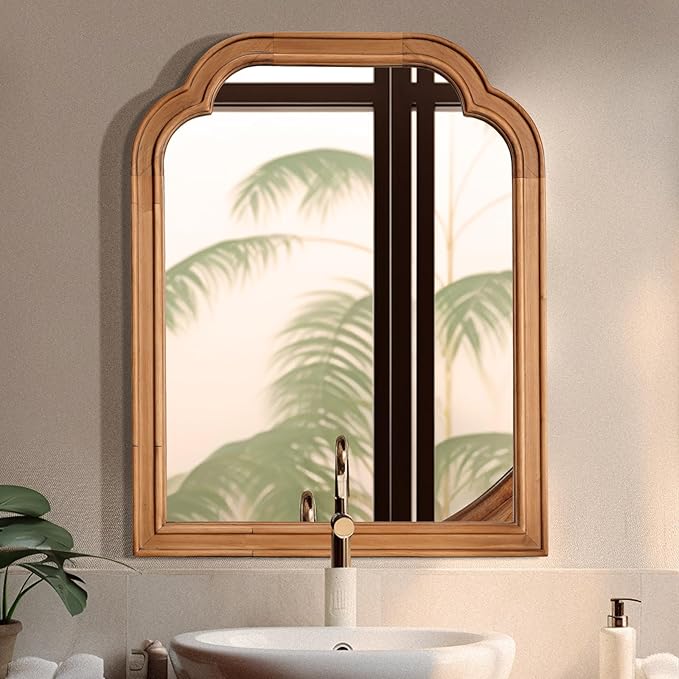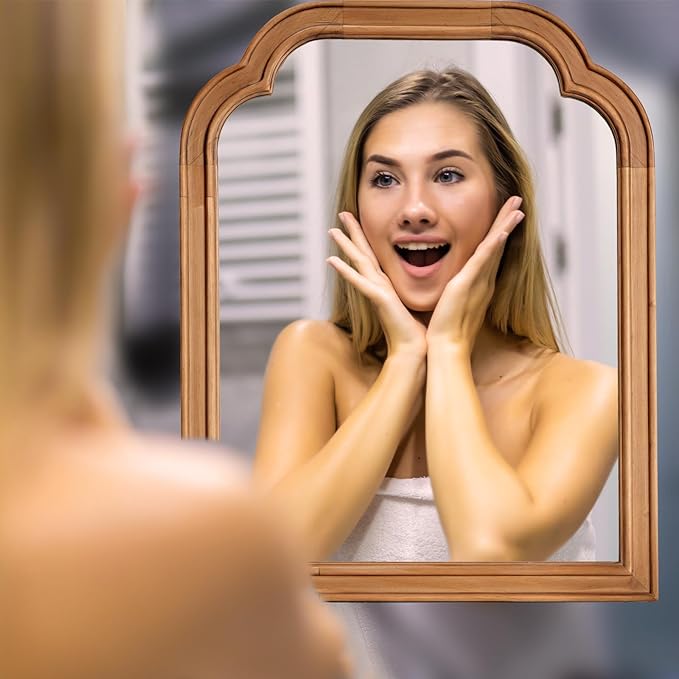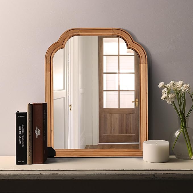 HOMECOOKIN Wood Frame Farmhouse Wall Mirror, 16" x 20" Wood Rustic Bathroom Mirror for Wall Decor Bedroom or Living Room Home Decor, Natural
