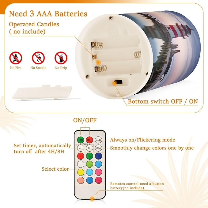 - 【EASY TO USE】- The Battery Operated LED Pillar Candles comes with a remote control has 18 button, which can easily turn on/off, remote control and timing can be operated remotely, has different flash modes can be adjusted. It also can set a timer to make these candles will light up at the same time every day, making them more easier to use, save your time.