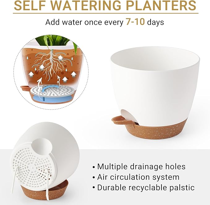 - Practical Design : High-quality PP plastic plant pot designed with a detectable water reservoir. The plant pot and saucer are removable due to the snap buckle rotating design, which is firm and not easy to fall. Excess water will drain through the edge of the tray. It also helps the roots to breathe.