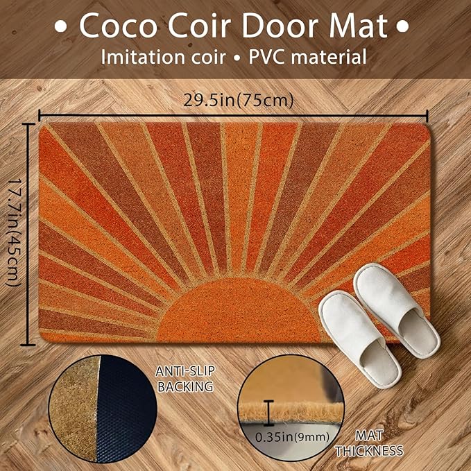 Nogrit Boho Coir Doormat for Outdoor Entrance Front Door Mats Boho Welcome Mat Door Mat Outdoor Indoor Door Mats for Entryway, 17x30 (Retro Sun)