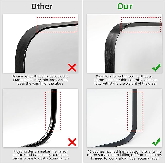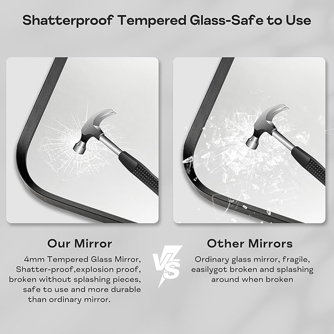 - Exceptional Quality: Our bathroom vanity mirror is made of 4MM tempered glass, more shatterproof and explosion-proof than ordinary mirrors, making it safer to use. The frame is made of advanced aluminum alloy frame, which is waterproof and rust proof, sturdy
