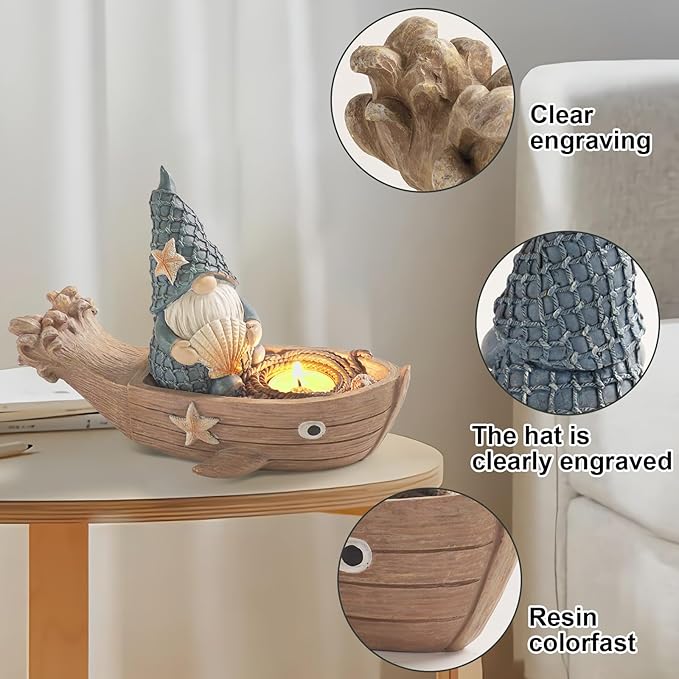 - Unique Design: the design of the Beach Gnome is inspired by nautical people, with the cute gnome standing on a nautical boat and shells, starfish, waves and other elements. Symbolizing courage and freedom.