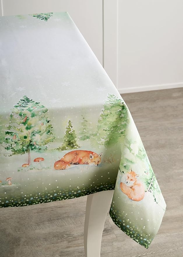 Maison d' Hermine Table Cloth Rectangle Table 100% Cotton 60 x 108 Inches Fall Tablecloth Reusable Everyday Use for Thanksgiving Christmas Decorations Dining Farmhouse Party (Winter Mornings)