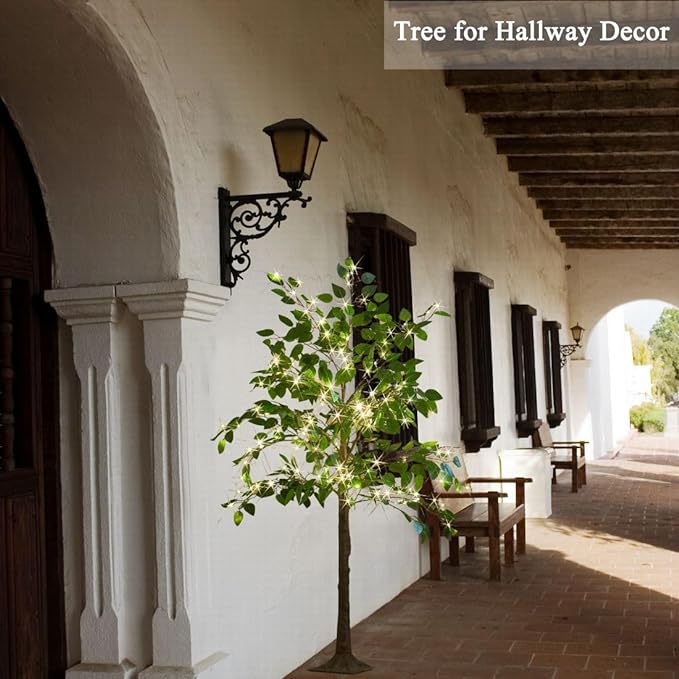 Hairui Artificial Ficus Silk Tree Lights 6FT 264 LED Fairy Lights, Faux Plant Tree with Lights for Home Room Spring Summer Christmas Decoration Indoor
