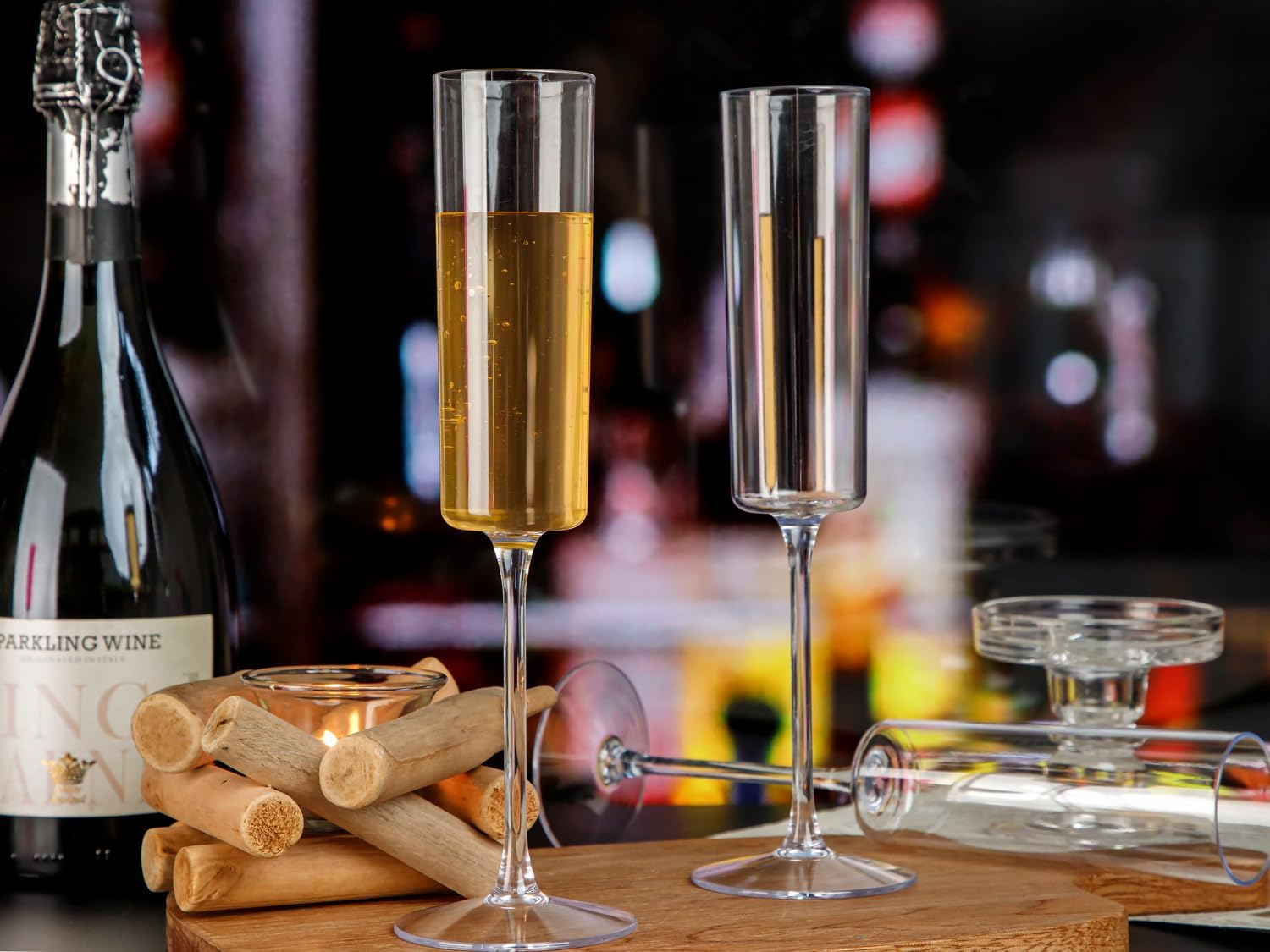 - The Perfect Gift: These plastic toasting glasses are sophisticated, glamorous and luxurious. They will make a unique gift that your family and friends are guaranteed to impress! Celebrate life's most memorable moments with a plastic disposable champagne flutes - weddings, anniversaries, mother's day, a costume reception or an engagement party that will surprise you beyond your wildest expectations.