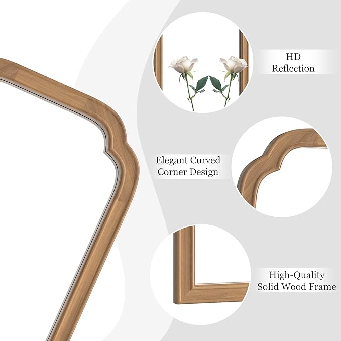 - Natural Wood Framed Mirror: This wall-mounted mirrors are handcrafted with care and attention to detail and design, High-Quality solid wood frame, and Mirror Materials to guarantee the sturdiness and consistent aesthetic beauty of the design.