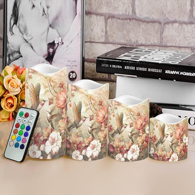 Ystardream Hummingbird Flameless Candle with Remote Control and Timer,Battery Operated Led Candle for Festival Celebration Home Decor,4 Pack Set