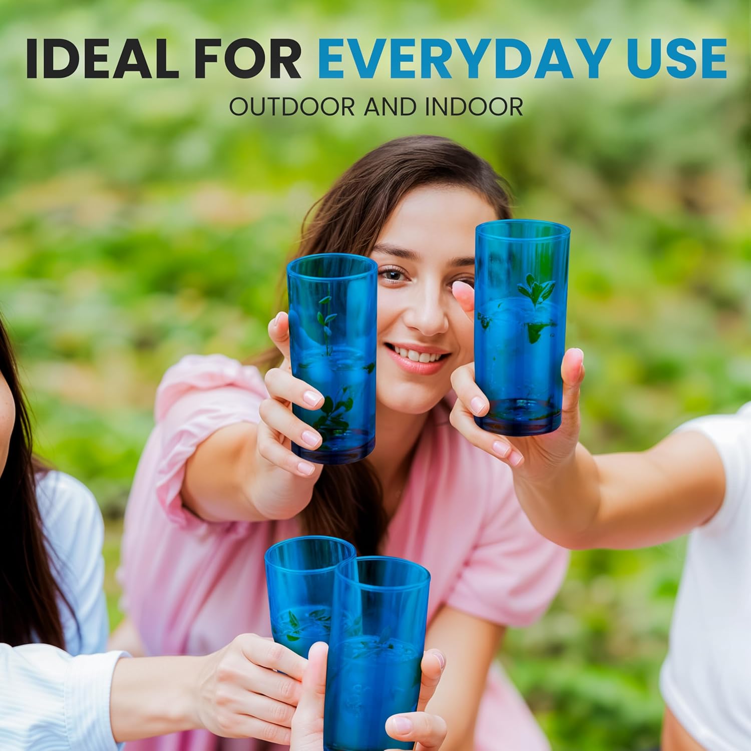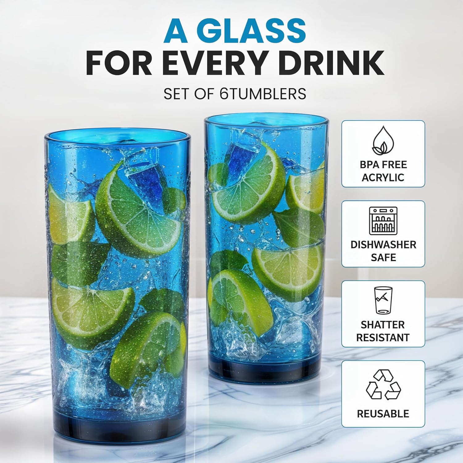 Zulay Kitchen Acrylic Glasses Drinkware - 6 Piece Unbreakable Plastic Tumblers - BPA-Free, Reusable Plastic Drinking Glasses for Home & Outdoors - Stackable, Lead-Free, Dishwasher Safe, Blue (16oz)