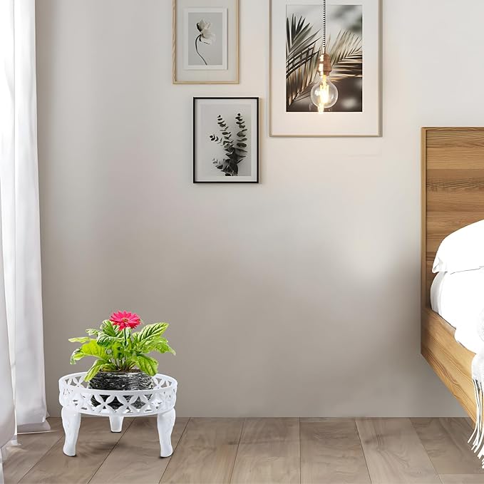 - Elegant Appearance: Planter stand, plate with exquisite hollow pattern design, simple smooth lines and solid while adding beautiful and practical embellishments, full of simple and retro modern atmosphere, making your home and garden full of natural, energetic and elegant atmosphere