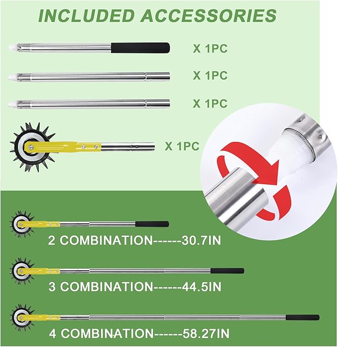 - Adjustable height: Rotary edger has three heights can be adjusted to different length: 30.7 INCH / 44.5 INCH / 58.3 INCH; This lawn edger tool is suitable for people of different heights, and also suitable for garden work in different scenes. This height can perfectly match your habit of using tools.