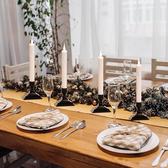 - Battery Operated Candles: Twist bottom to insert 2 AAA batteries for each flamless taper candle(Battery Not Included), safe and clean design ensure no smoking and dripping wax worries, no fire danger. Safety and Clean using in your room.