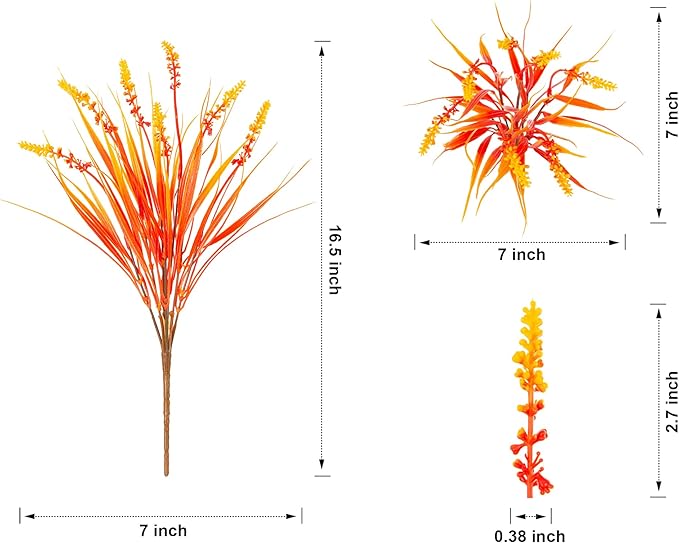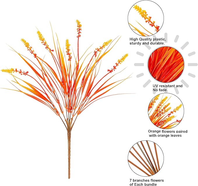 Artificial Fall Fake Outdoor Plants Flowers for Autumn Decoration,10 Bundles Faux Plastic Tall Monkey Grass Greenery UV Resistant Realistic for Home Outside Planter Window Porch Patio Garden (Orange)