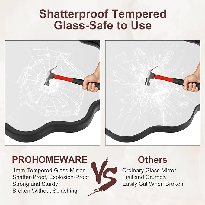 - 【Shatterproof Tempered Glass】: The wall-mounted bathroom mirror features 5MM tempered glass with shatterproof film, which is shatter-proof, burst-proof, and ensures your safety even in case of breakage