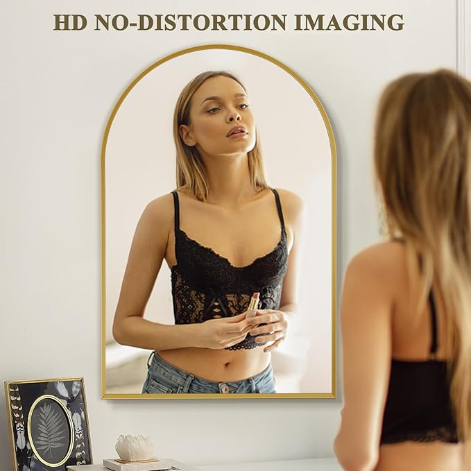 - Brushed Gold Metal Frame: Minuover's gold arch mirror made of high-quality aluminum alloy frame is made of aluminum alloy wire drawing technology, sturdy, sturdy, and rust resistant, designed specifically for long-term use. This wall mounted mirror can perform beautifully in both damp and dry environments