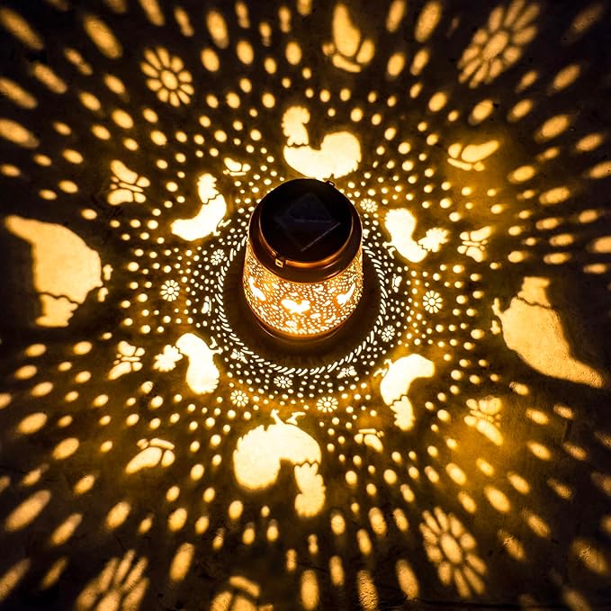 - 【Unique Garden Decor】Chicken solar lantern can project unique and beautiful patterns in a dim environment,creating a gorgeous and warm atmosphere to bring life and fun to your garden and attract your family or friends.The unique hollow out design and beautiful antique bronze color give it an artistic touch,perfect for decorating gardens,backyards,corners,Outside,sidewalks and many other scenes.