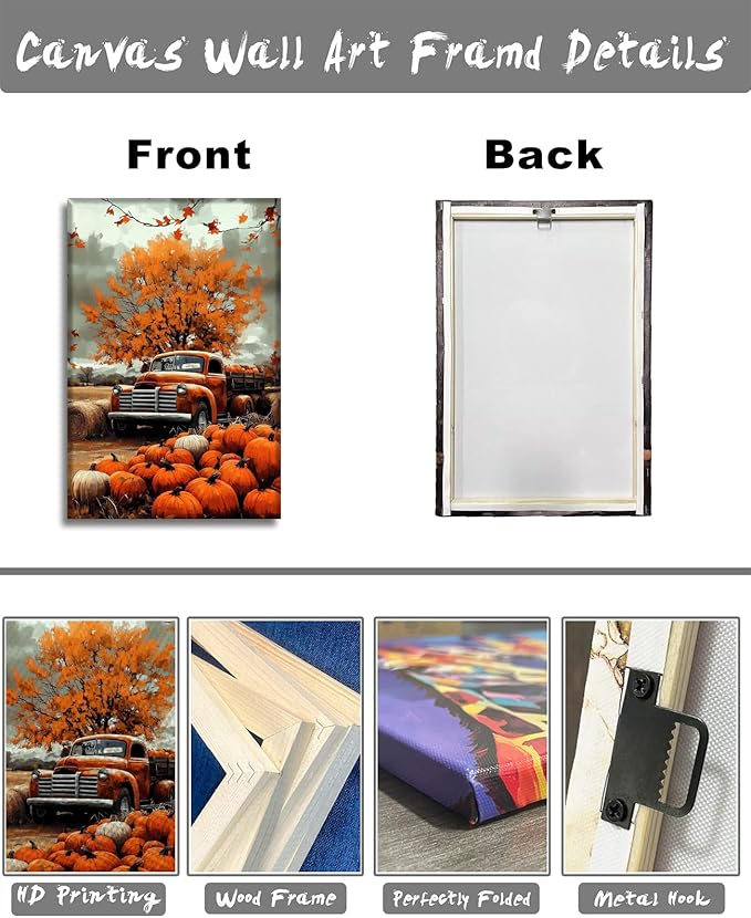 LYUNSHUO Autumn Wall Art Pumpkin Canvas Wall Decor Truck Picture Fall Harvest Painting Rustic Farmhouse Vintage Artwork for Living Room Bedroom Home Halloween Decor(Art-1,20.00"x30.00")