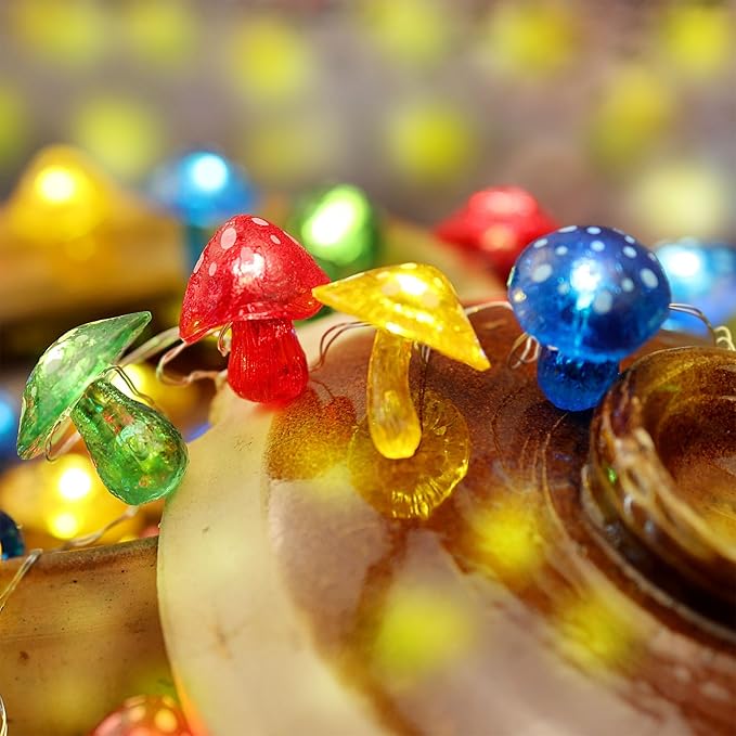 - 1. Whimsical 3D Mushroom Lights - Transform your outdoor space with our delightful 3D Mushroom Solar String Lights. Each mushroom, about 1.2x1.2 inches, is crafted to add a playful and enchanting glow to your garden or patio, making it a perfect decorative piece for any outdoor setting.