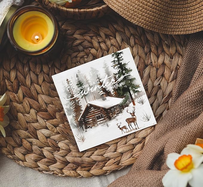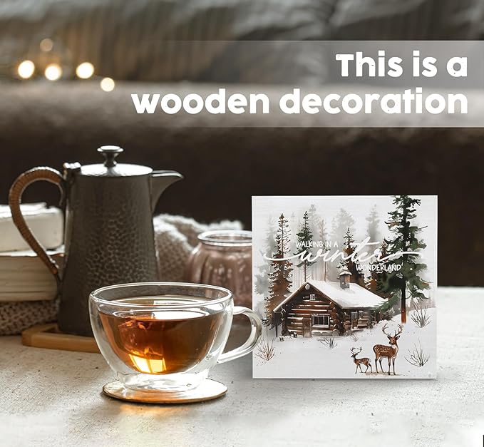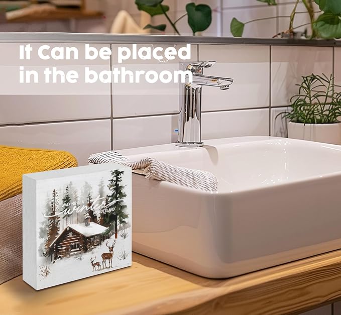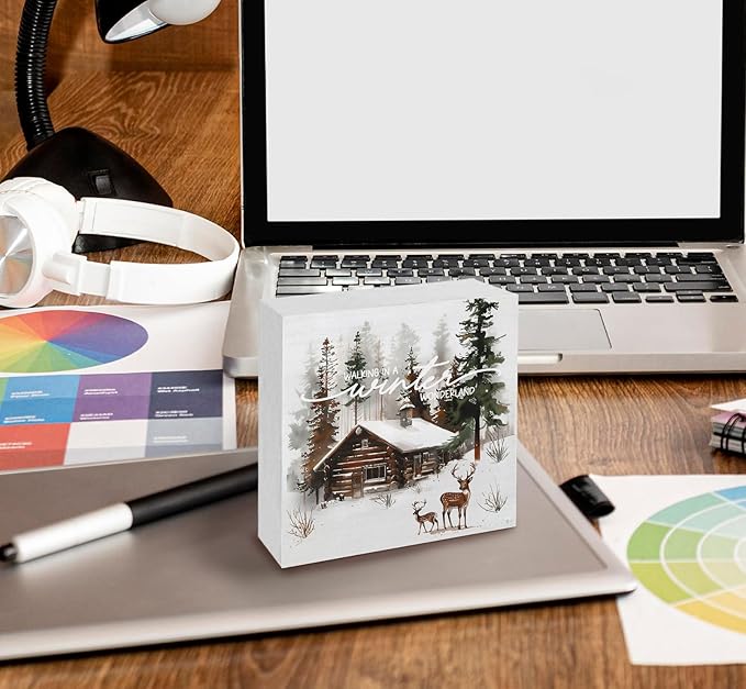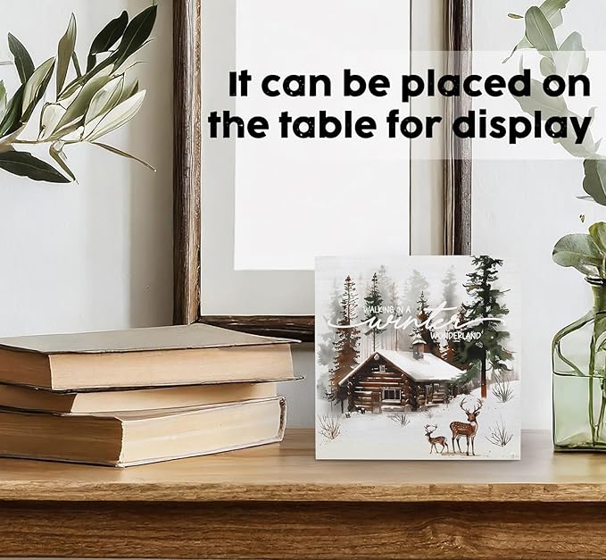 Winter Sign, Winter Christmas Reindeer Wooden Box Sign, Farmhouse Xmas Decorations, Wonderland Decorations, Christmas Wood Signs for Home Office Desk Table Shelf Decor, 5x5 Inch